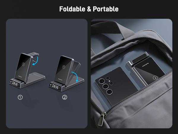 5-In-1 Wireless Charging Station with Digital Clock, Foldable for Easy Storage, and Equipped with a USB-C Port—Compatible with Iphone, Android Devices, Samung Watch, and Airpods. ELECDOV Ce20S—The Perfect Gift.