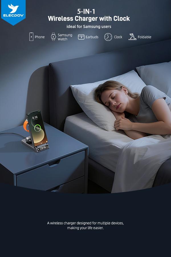 📱ELECDOV 5-in-1 Foldable Wireless Charging Station